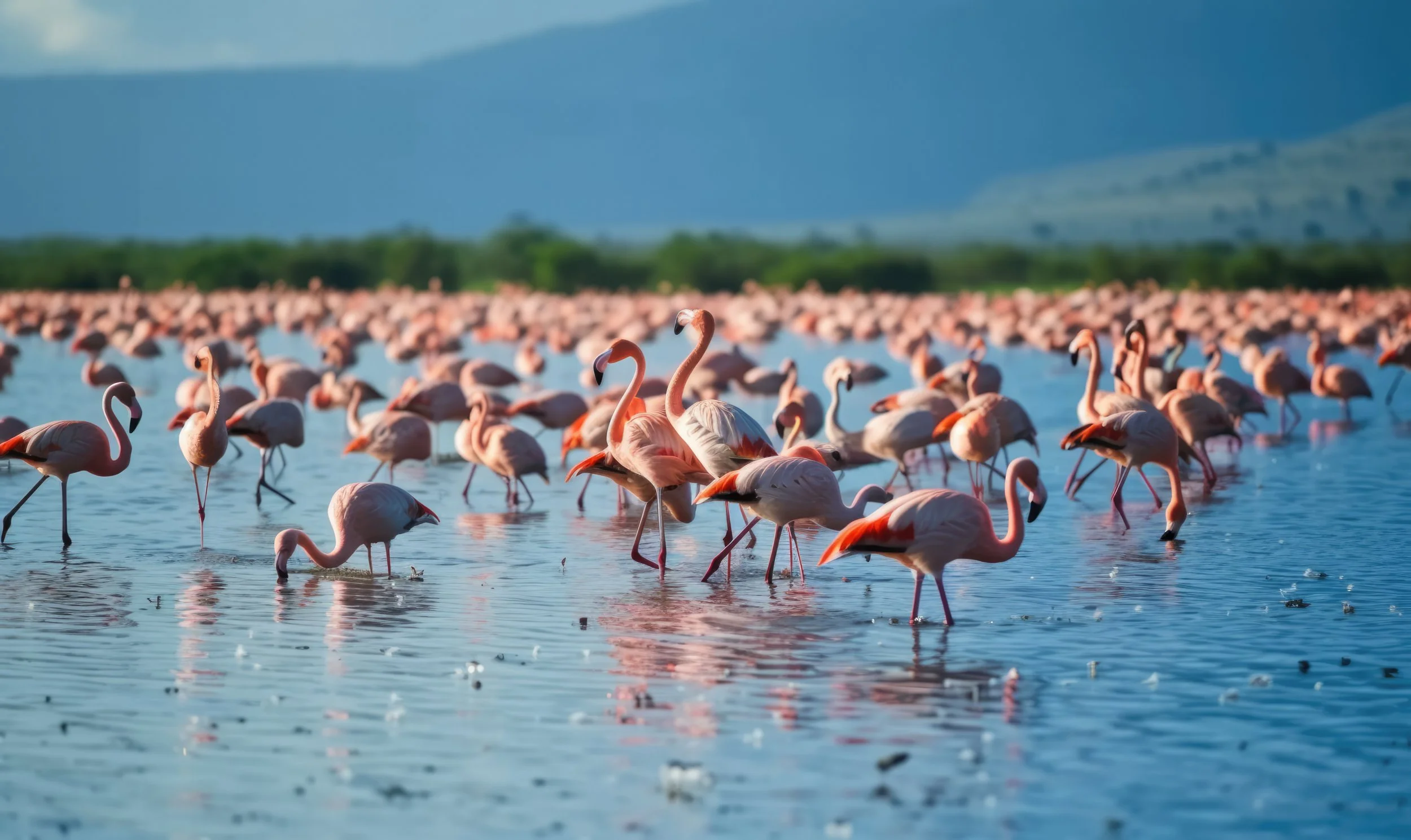 Today we will explore Ngorongoro Crater. This natural wonder, formed millions of years ago, showcases its breath-taking beauty as you descend over 600 meters down its towering walls. The crater is a haven for a diverse range of animal species, including herds of buffalo, zebra, wildebeest, eland, warthog, and African elephant. The next day in the morning after breakfast, prepare for an extraordinary descent into the Ngorongoro National Park. One of the major highlights of this tour is the abundant presence of predators in this unique natural animal sanctuary. Lions, cheetahs, jackals, hyenas, and leopards, occasionally requiring a keen eye or binoculars to spot, add an air of mystery and excitement to your adventure. The tour will also take you to the picturesque Lake Magadi, a shallow alkaline lake in the southwest corner, frequented by hippos, flamingos, and various aquatic birds.